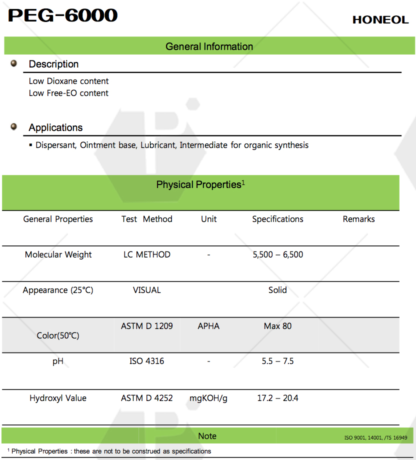 活性剂聚乙二醇-韩国乐天聚乙二醇PEG6000